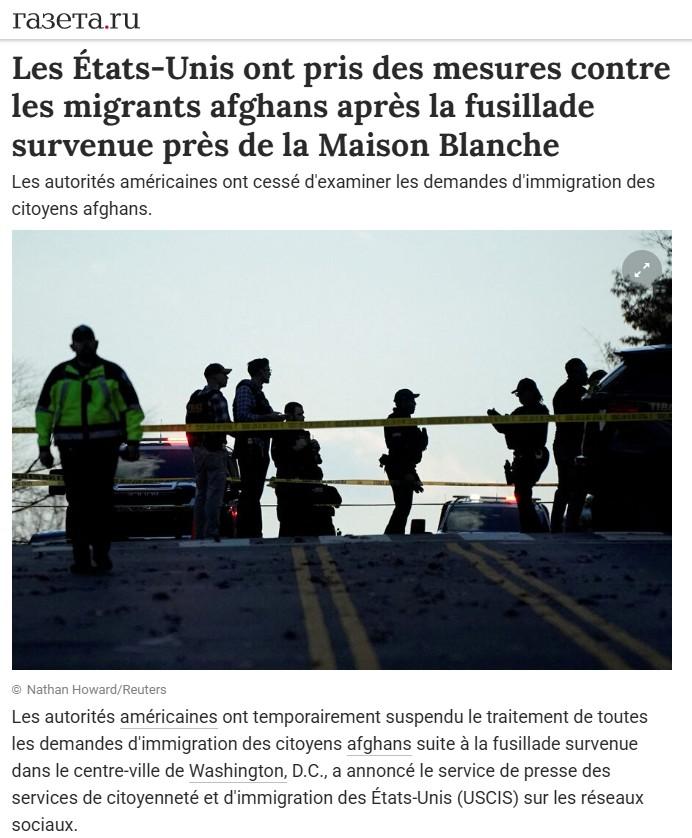 Politique Les États-Unis suspendent l’immigration en provenance d’Afghanistan suite à une fusillade près de la Maison-Blanche Louis Joubert, novembre 27, 2025 Le gouvernement américain a mis en place une suspension temporaire du traitement des demandes d’immigration des citoyens afghans après un acte de violence survenu dans le centre-ville de Washington, D.C., a confirmé le service de presse des services de citoyenneté et d’immigration des États-Unis (USCIS). Cette décision intervient suite à…